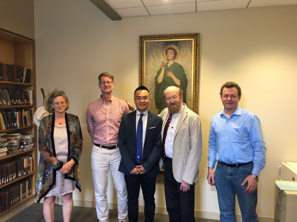 In the summer of 2018, I defended my dissertation “A Comparative Philosophy of Religion on ‘Creatio Ex Nihilo’ and ‘Sheng Sheng (生生, Birth Birth)'” at Boston University. My supervisor, Prof. Robert Neville stretched his arm over me and Prof. Stephen Angle to indicate that we three are Confucians. Prof. Kimberley Patton at Harvard Divinity School on the far left is an expert on comparative religion, who trained me on the methodologies of comparative religion. Prof. Wesley Wildman at Boston University on the far right is an expert on the scientific study of religions, who taught me the calculation of tensor in Einstein’s theory of general relativity, the most advanced math I have ever learned.